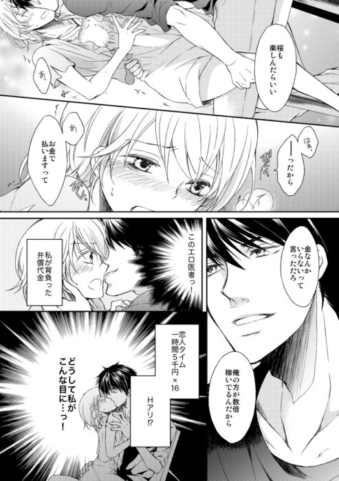 【2013/11配信】七里慧先生:恋人タイムは時給5000円 作品紹介 LUNATICS編集室。恋人タイムは時給5000円「今は俺の時間だろ、桜も楽しめばいい」押しが強くて強引だけど乱暴ってわけじゃなく……しかもあんなコト……榊先生ってこういう人だったの!? 医療事務の綾瀬桜はある日、小児科医・榊のブランド(?)モノの眼鏡を壊してしまう。その金額……なんと8万円!! 薄給の桜にそんなお金など払えるわけもなく……慌てる桜に榊が持ち掛けた提案、それは「弁償代金分割払い・時給5000円×16回(Hアリ!?)」!!